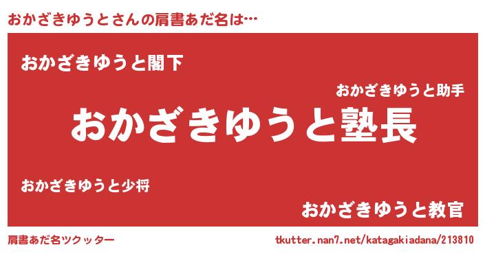 | 男性向けラノベタイトル風あだ名 | 『ダンジョンにおかざきゆうとを求めるのは間違っているだろうか』 |