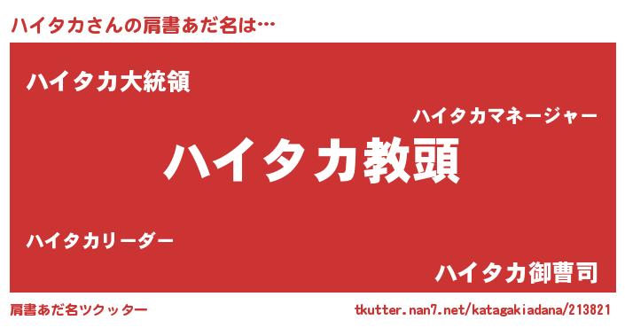 | ヘコむあだ名 | 『ハイタカ(笑)』『豆乳』『ハイお』 |