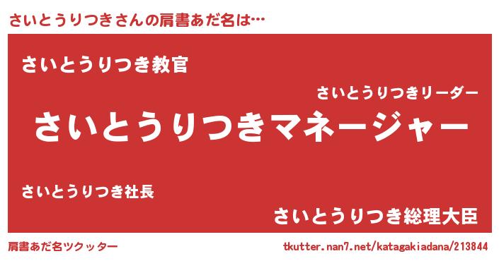 | 男性向けラノベタイトル風あだ名 | 『さいとうりつきに滅ぼされるだけの簡単なお仕事です』 |