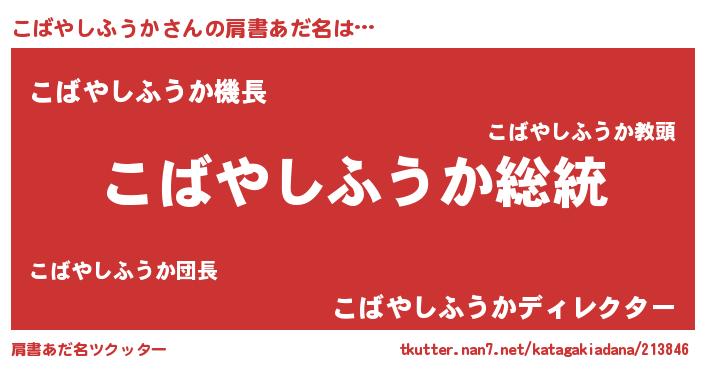| 男性向けラノベタイトル風あだ名 | 『Re:こばやしふうかから始める異世界生活』 |