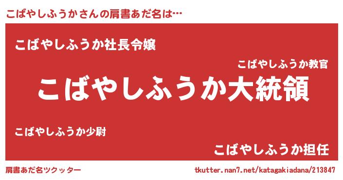 | 欧米人風あだ名 | 『こばやしふうかクリステル』 |