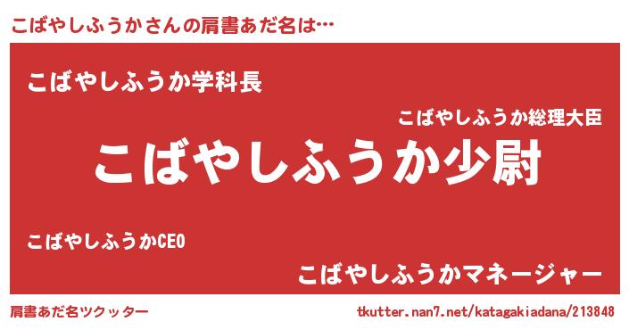 | 男性向けラノベタイトル風あだ名 | 『こばやしふうか~年齢イコール彼女いない歴の魔法使い~』 |