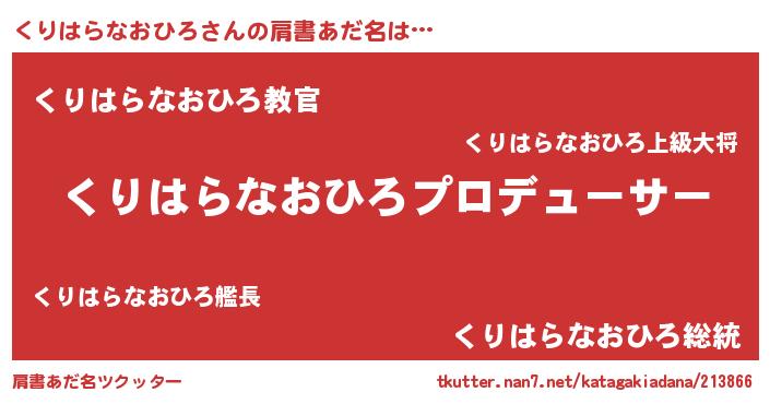 | 男性向けラノベタイトル風あだ名 | 『くりはらなおひろに滅ぼされるだけの簡単なお仕事です』 |