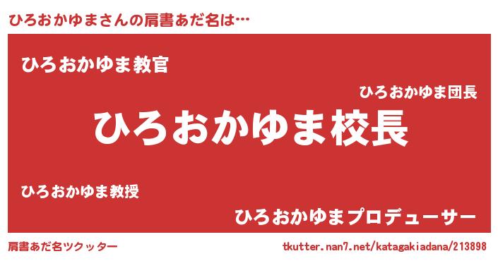 | 女子向けラノベタイトル風あだ名 | 『異世界で失敗しない100のひろおかゆま』 |