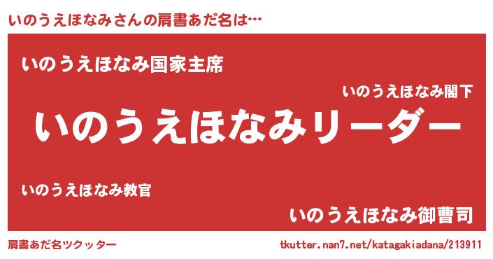 | 意味不明あだ名 | 『とにかく怪しいいのうえほなみ』 |