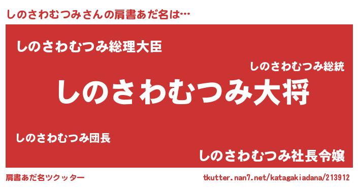 | 男性向けラノベタイトル風あだ名 | 『シノサワムツミスレイヤー』 |