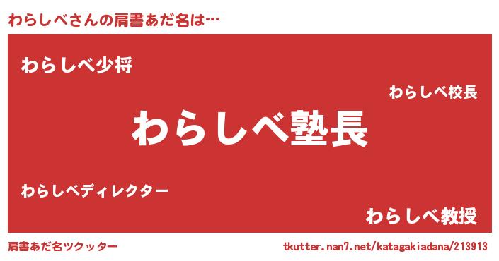 | 欧米人風あだ名 | 『ウサインわらしべ』『ダニエルわらしべ』 |