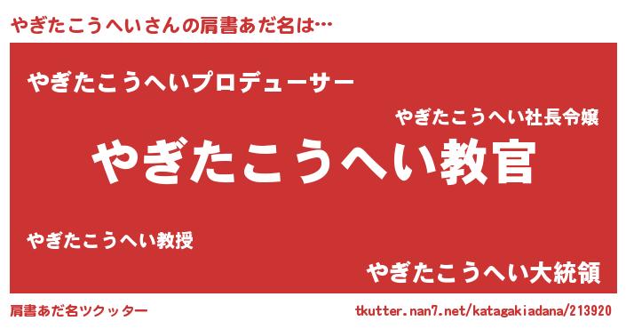 | 意味不明あだ名 | 『住所不定無職やぎたこうへい(6歳)』 |