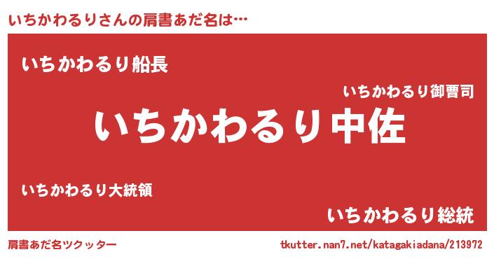 | ヒーロー風カッコイイあだ名 | 『最強戦士イチカワルリ』『仮面イチダー』 |
