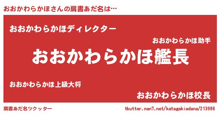 | 意味不明あだ名 | 『永久保存おおかわらかほ』 |