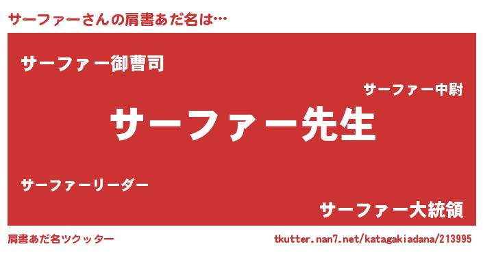 | 男性向けラノベタイトル風あだ名 | 『サーファーという概念が存在しない退屈な世界 』 |