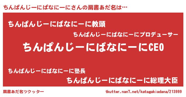 | ヒーロー風カッコイイあだ名 | 『スーパーチンパンジーニバナニーニ』 |