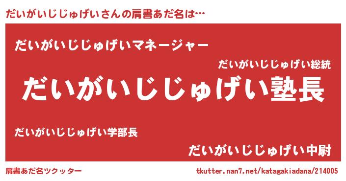 | 男性向けラノベタイトル風あだ名 | 『だいがいじじゅげいの嫁は女の子じゃないと思った?』 |