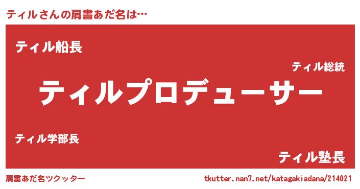 | 男性向けラノベタイトル風あだ名 | 『ティルに滅ぼされるだけの簡単なお仕事です』 |