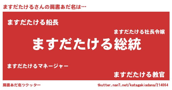 | 男性向けラノベタイトル風あだ名 | 『Re:ますだたけるから始める異世界生活』 |