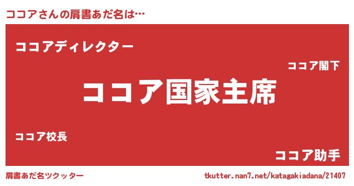 | ポケモン風あだ名 | 『ココアダネ』『ココゴンZ』 |