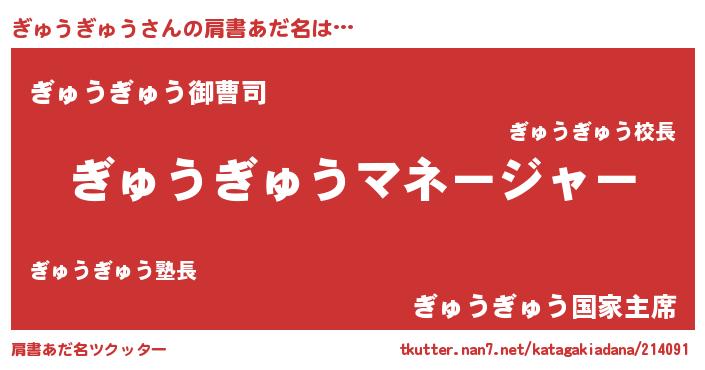 | 男性向けラノベタイトル風あだ名 | 『はたらくぎゅうぎゅうさま!』 |