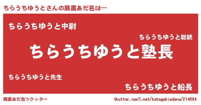 | 意味不明あだ名 | 『とにかく怪しいちらうちゆうと』 |