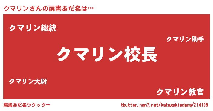 | 意味不明あだ名 | 『永久保存クマリン』『自称クマリン』 |