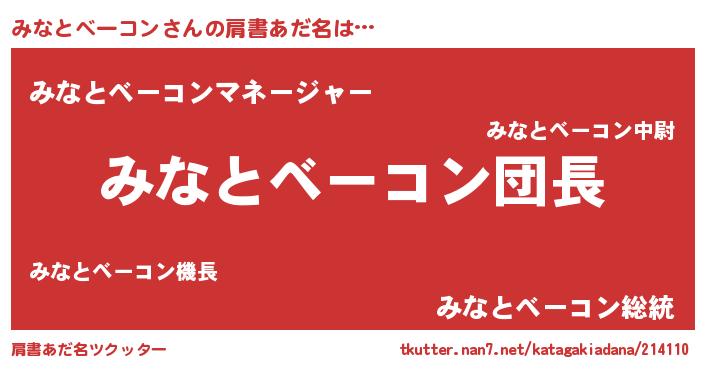 | 意味不明あだ名 | 『とにかく怪しいみなとベーコン』 |