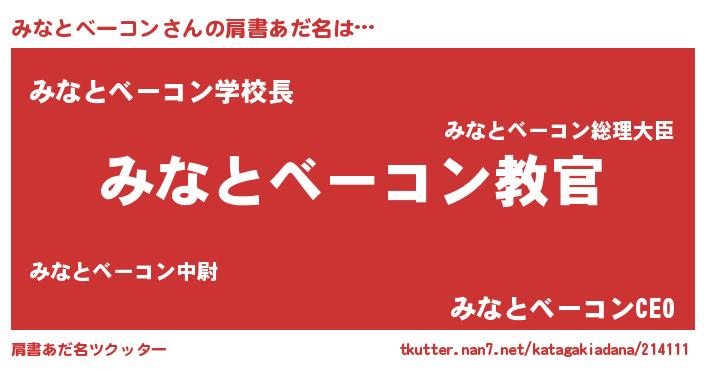 | ヒーロー風カッコイイあだ名 | 『仮面ミナダー』『ネオミナトベーコン』 |