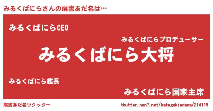 | 男性向けラノベタイトル風あだ名 | 『転生したらみるくばにらだった件』 |