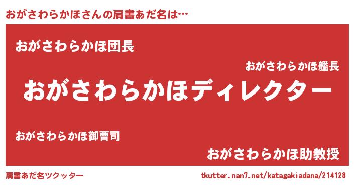 | ポケモン風あだ名 | 『オガゴンZ』『ヒオガサワラカホ』 |