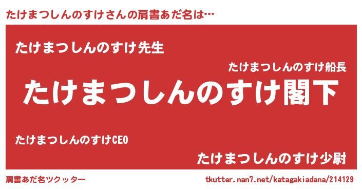 | ヘコむあだ名 | 『たけまつしんのすけ(笑)』『たけにー』 |