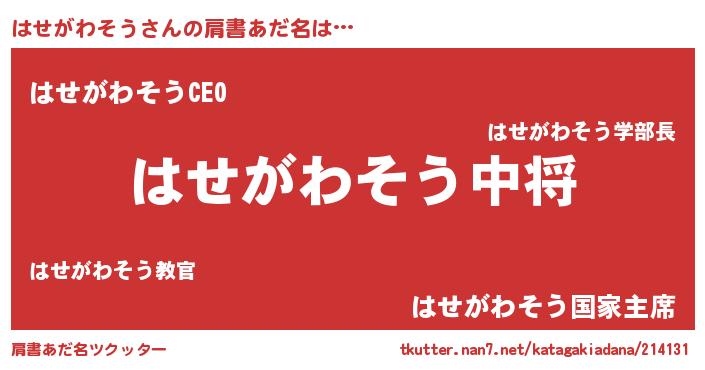 | ポケモン風あだ名 | 『ハセキング』『ハセチュウ』 |
