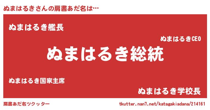 | 意味不明あだ名 | 『自称ぬまはるき』『ペロリンぬまはるき』 |