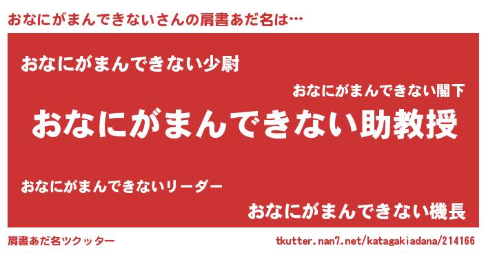 | ヘコむあだ名 | 『おなを』『おなにがまんできない(笑)』 |