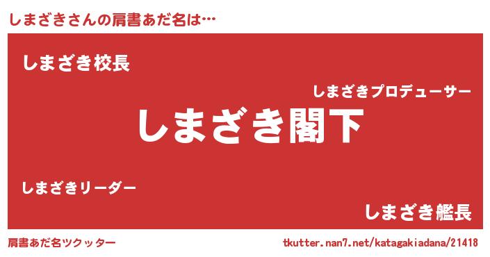 | 意味不明あだ名 | 『自称しまざき』『永久保存しまざき』 |