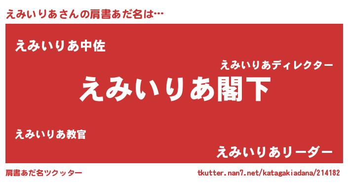 | 意味不明あだ名 | 『自称えみいりあ』『永久保存えみいりあ』 |