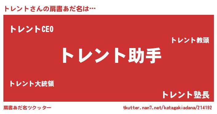 | ヒーロー風カッコイイあだ名 | 『愛の使者トレント』『スーパートレント』 |