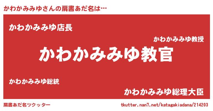 | 男性向けラノベタイトル風あだ名 | 『この素晴らしい世界にかわかみみゆを!』 |