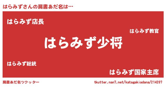| 男性向けラノベタイトル風あだ名 | 『転生したらはらみずだった件』 |