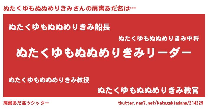 | 女子向けラノベタイトル風あだ名 | 『ぬたくゆもぬぬめりきみは平凡を望む』 |