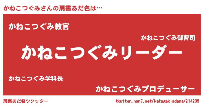 | 意味不明あだ名 | 『とにかく怪しいかねこつぐみ』 |