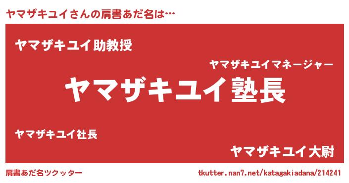 | ヒーロー風カッコイイあだ名 | 『黄金騎士ヤマ』『スーパーヤマザキユイ』 |