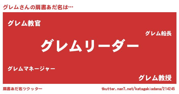 | 意味不明あだ名 | 『とにかく怪しいグレム』 |