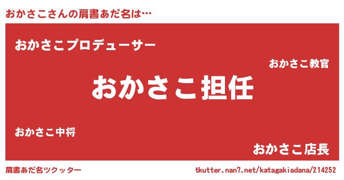 | 意味不明あだ名 | 『永久保存おかさこ』『ペロリンおかさこ』 |
