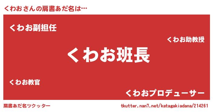 | 意味不明あだ名 | 『とにかく怪しいくわお』 |