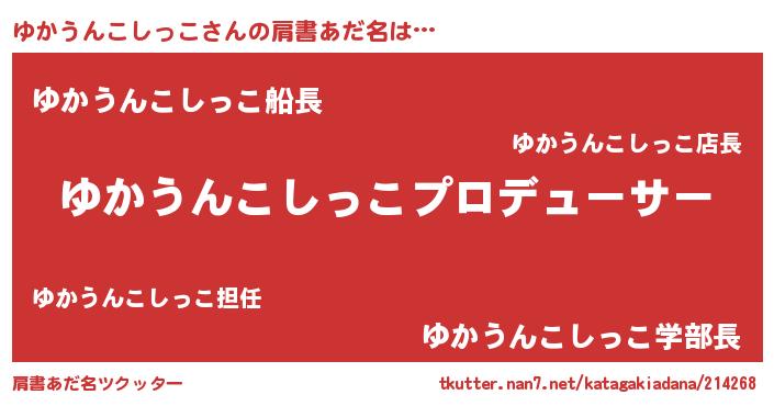 | 男性向けラノベタイトル風あだ名 | 『はたらくゆかうんこしっこさま!』 |