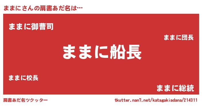 | ヘコむあだ名 | 『ままにー』『ままぷりん』 |
