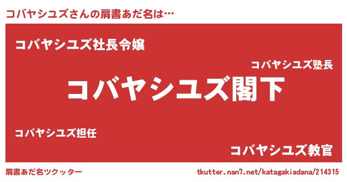 | 意味不明あだ名 | 『自称コバヤシユズ』 |