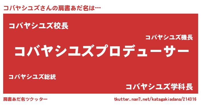 | 意味不明あだ名 | 『永久保存コバヤシユズ』 |