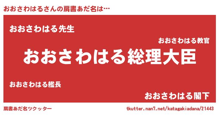 | 男性向けラノベタイトル風あだ名 | 『やはりおおさわはるの青春ラブコメはまちがっている 』 |