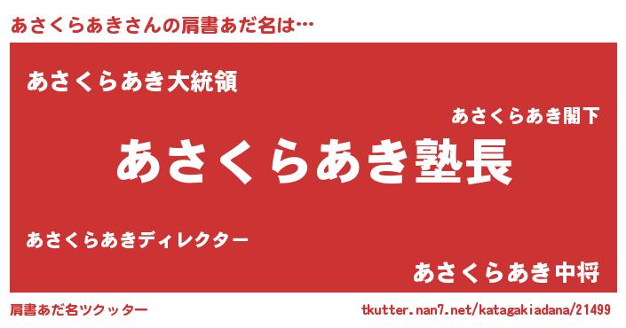 | 女子向けラノベタイトル風あだ名 | 『あさくらあき様がみてる』 |