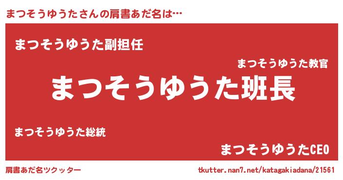 | ヘコむあだ名 | 『まつ太郎』『まつそうゆうた(遠い目)』 |