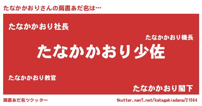 | ヒーロー風カッコイイあだ名 | 『スーパータナカカオリ』『仮面タナダー』 |